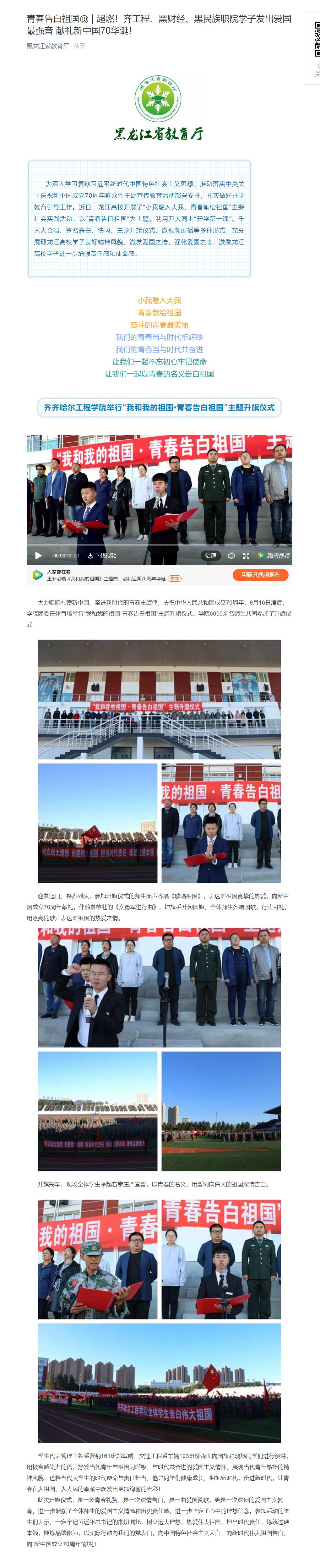 黑龙江省教育厅微信公众号:学院举行“青春告白祖国”主题活动
