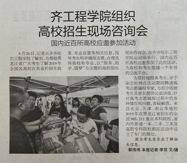 齐齐哈尔日报:齐工程学院组织高校招生现场咨询会 国内近百所高校应邀参加活动