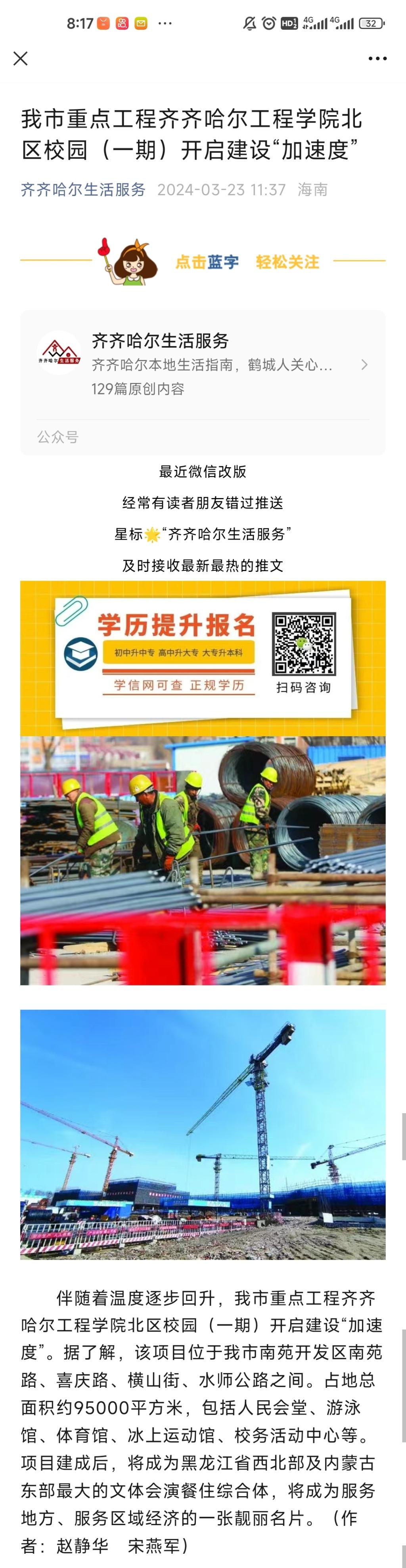 《齐齐哈尔生活服务》报道《我市重点工程伟德bv1946官网北区校园(一期)开启建设“加速度”》
