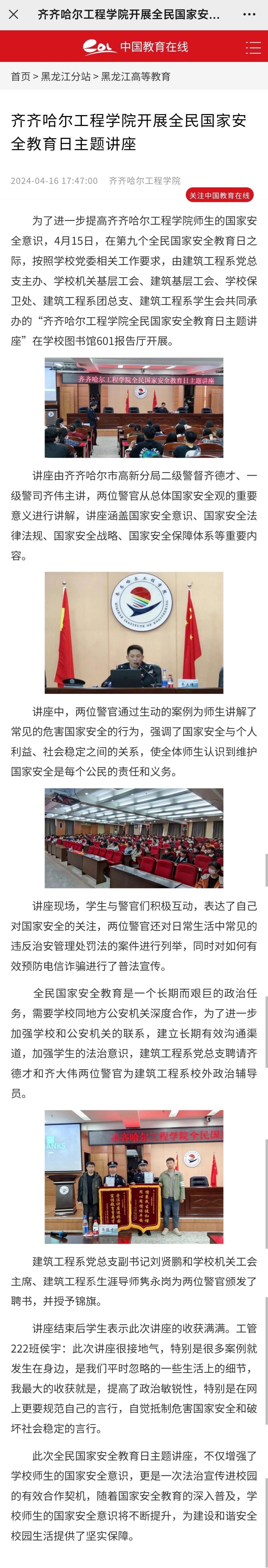 《中国教育在线》发表伟德bv1946官网开展全民国家安全教育日主题讲座