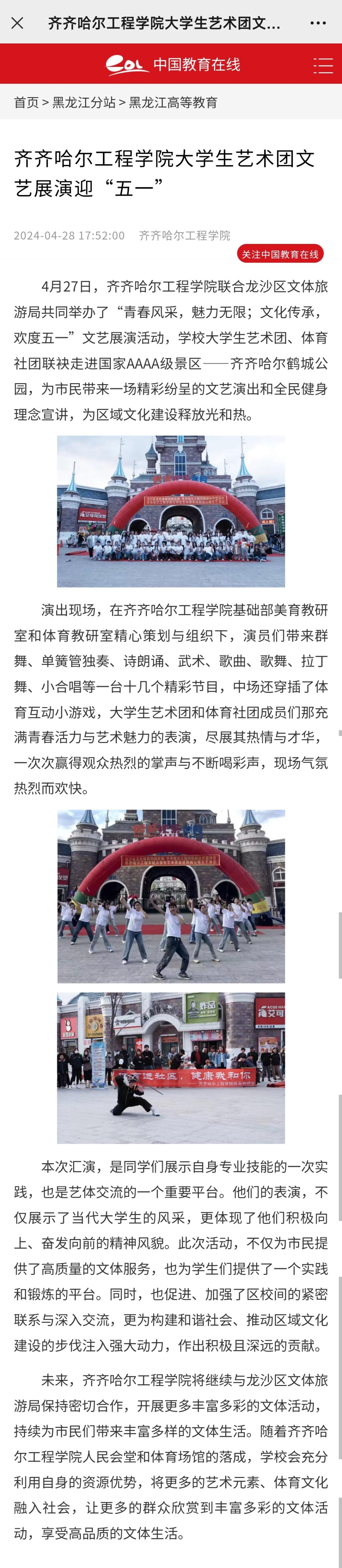 《中国教育在线》报道伟德bv1946官网大学生艺术团文艺展演迎“五一”