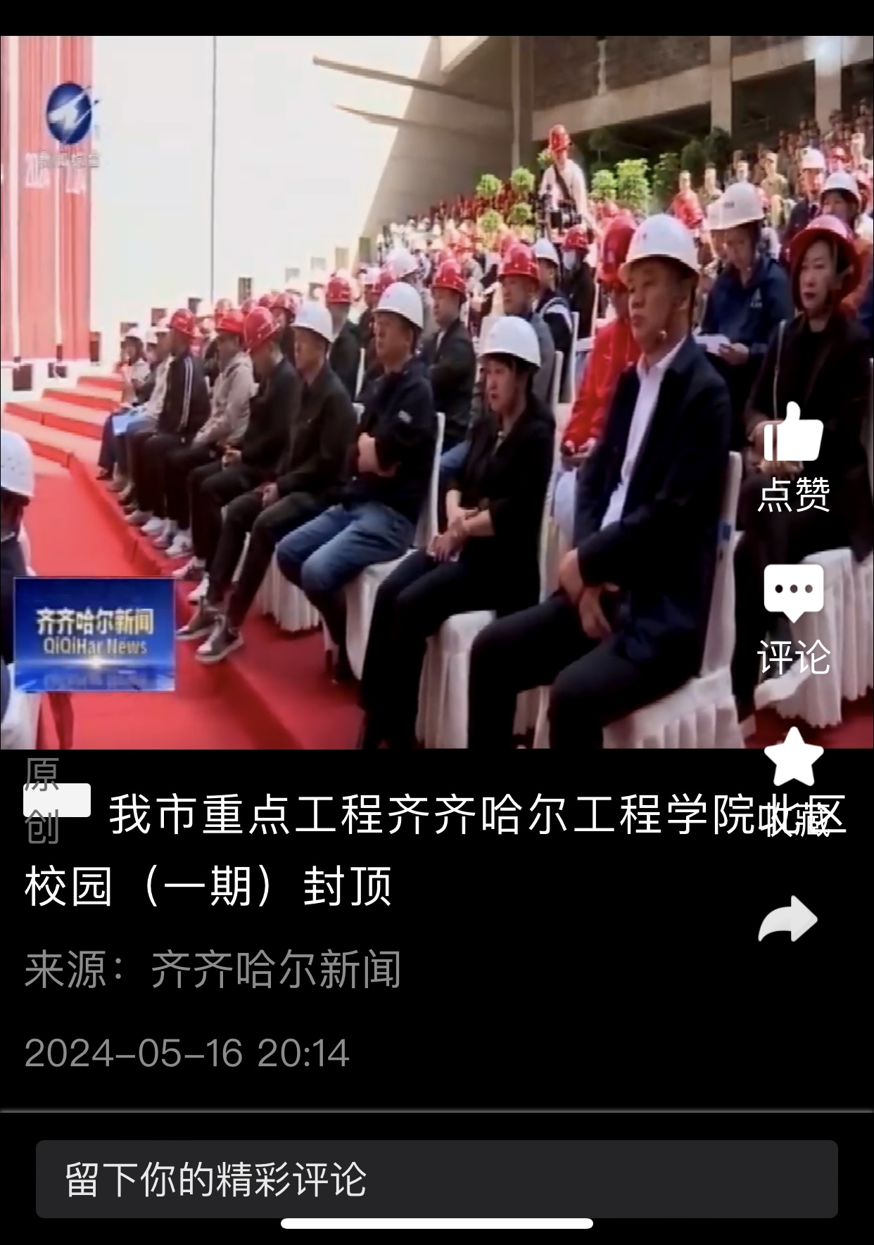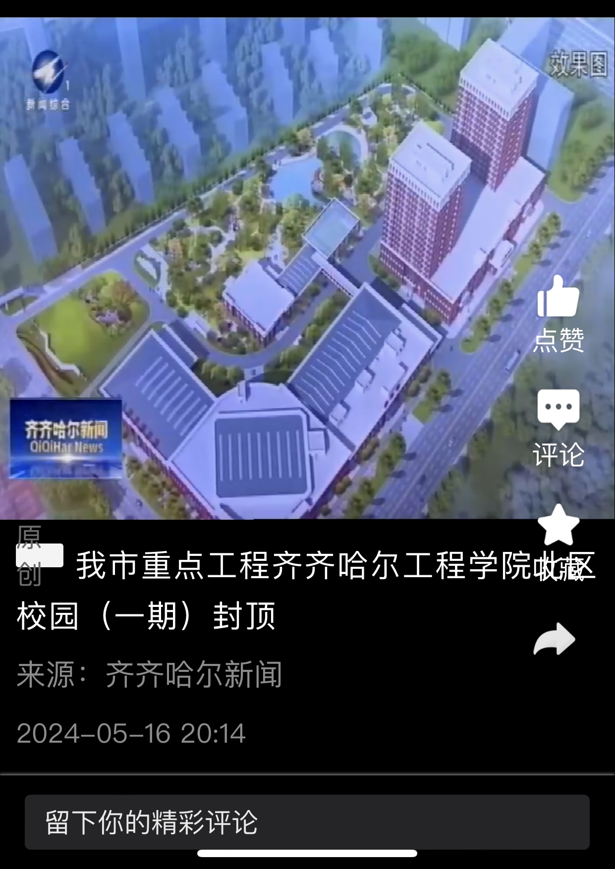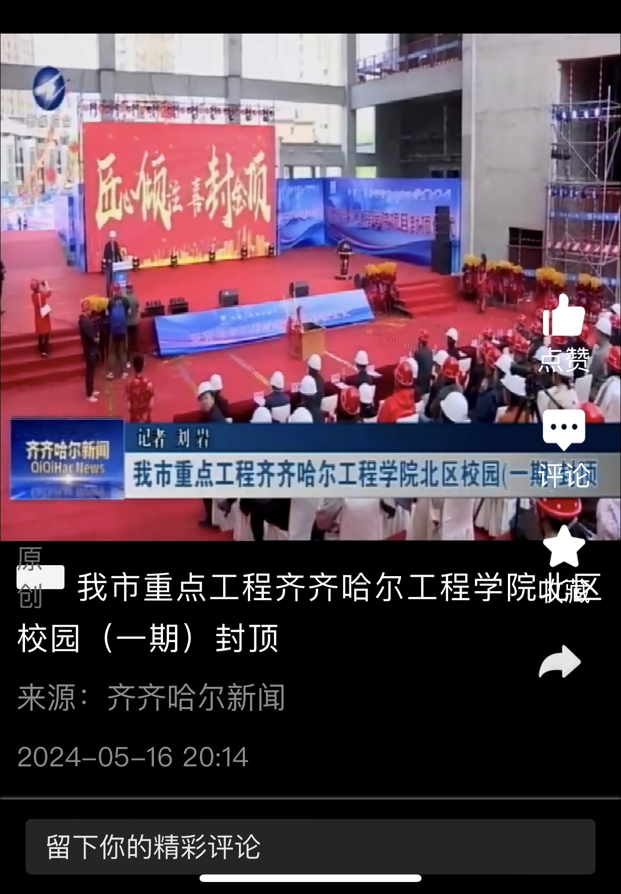 《齐齐哈尔新闻》报道我市重点工程伟德bv1946官网北区校园(一期)封顶