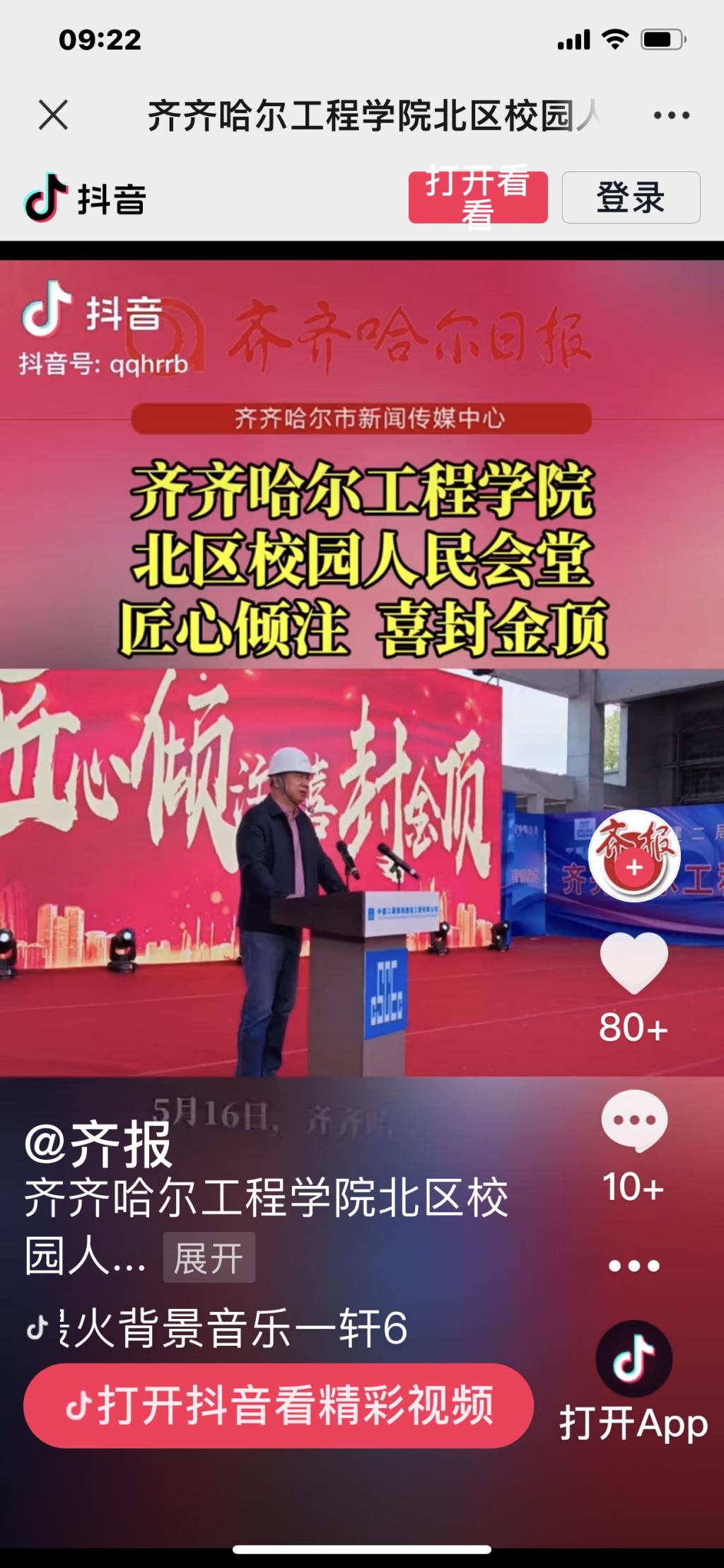 《抖音》平台发布伟德bv1946官网北区校园人民会堂匠心倾注喜封金顶