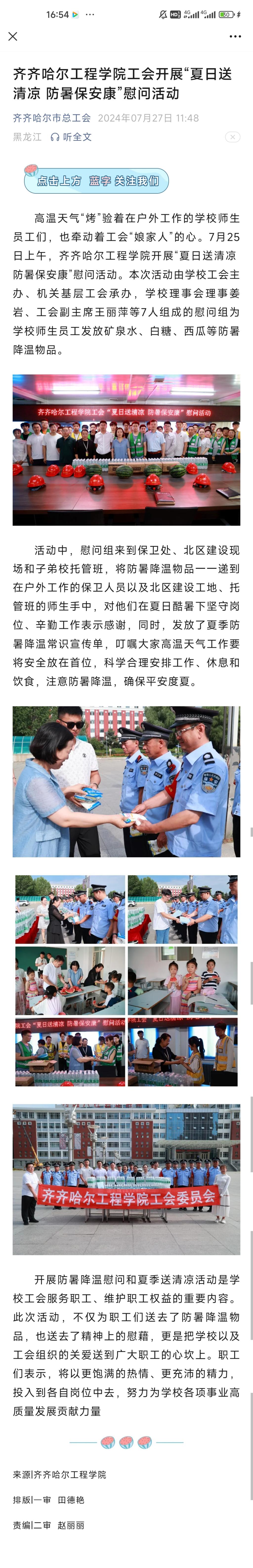 《齐齐哈尔市总工会》报道伟德bv1946官网工会开展“夏日送清凉 防暑保安康”慰问活动