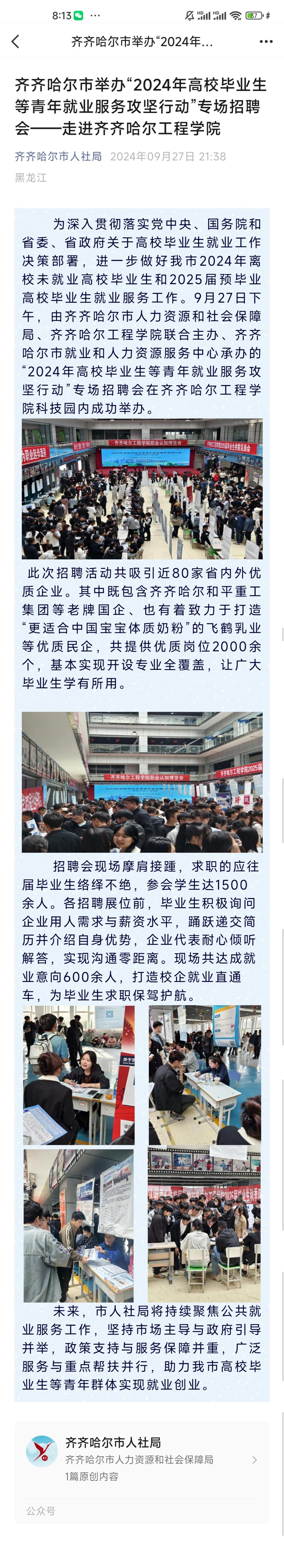 《齐齐哈尔市人社局》报道齐齐哈尔市举办“2024年高校毕业生等青年就业服务攻坚行动”专场招聘会——走进伟德bv1946官网