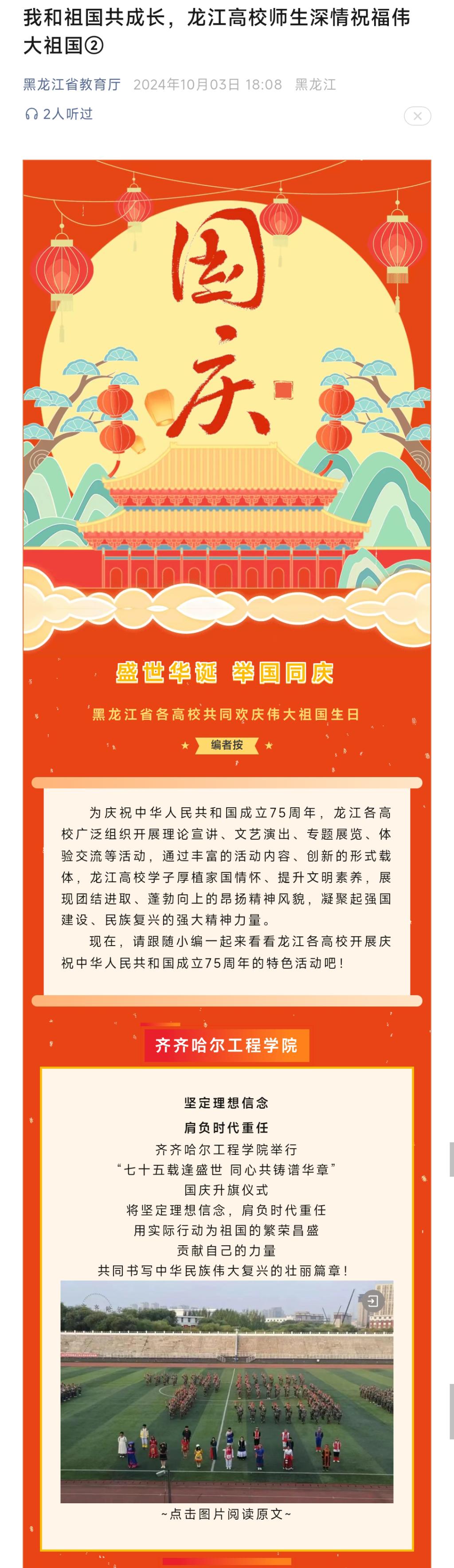《黑龙江省教育厅》报道伟德bv1946官网举行“七十五载逢盛世 同心共铸谱华章”国庆升旗仪式
