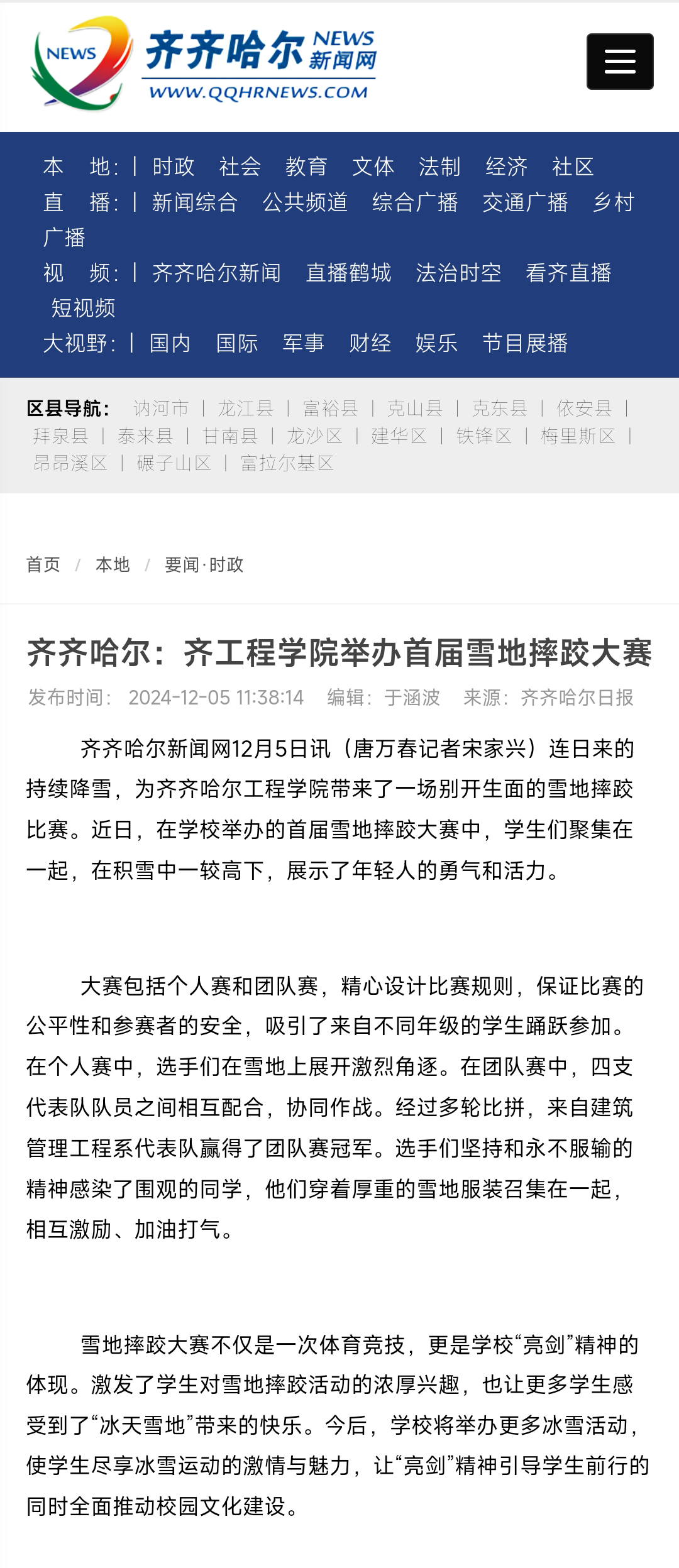《齐齐哈尔新闻网》齐工程学院举办首届雪地摔跤大赛