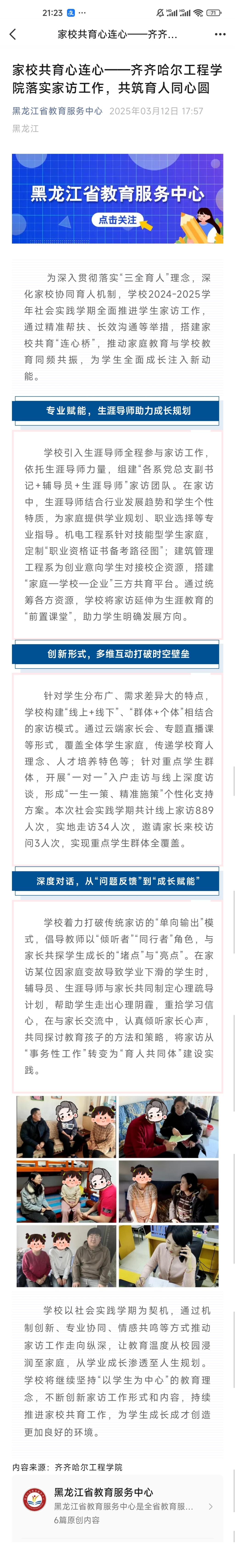 《黑龙江省教育服务中心》家校共育心连心——伟德bv1946官网落实​家访工作,共筑育人同心圆
