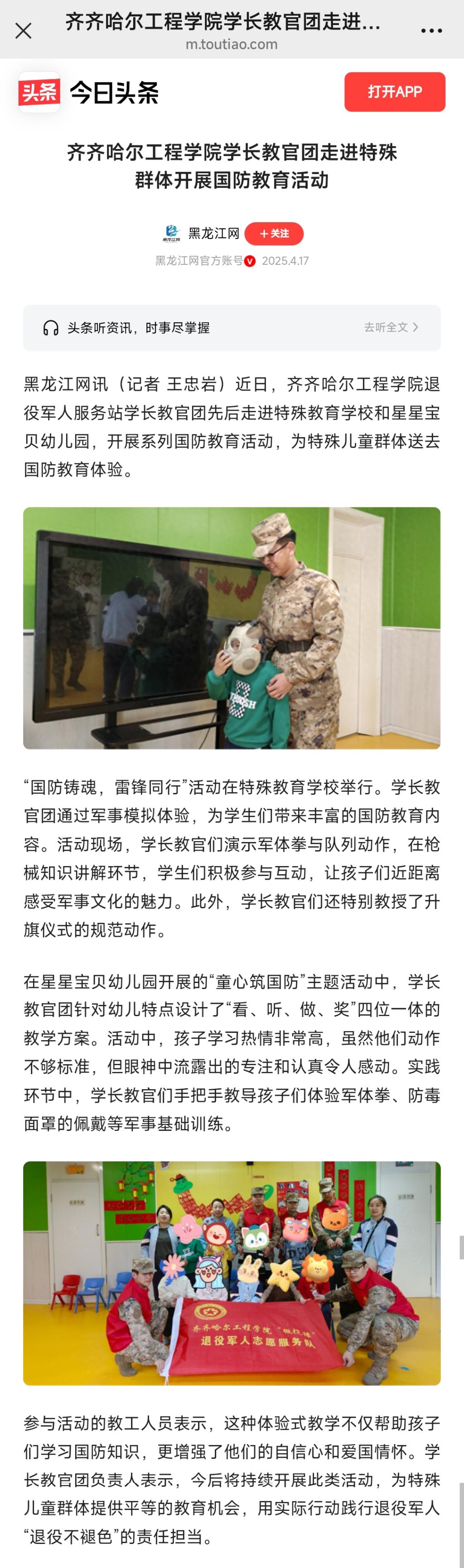 《今日头条》伟德bv1946官网学长教官团走进特殊群体开展国防教育活动