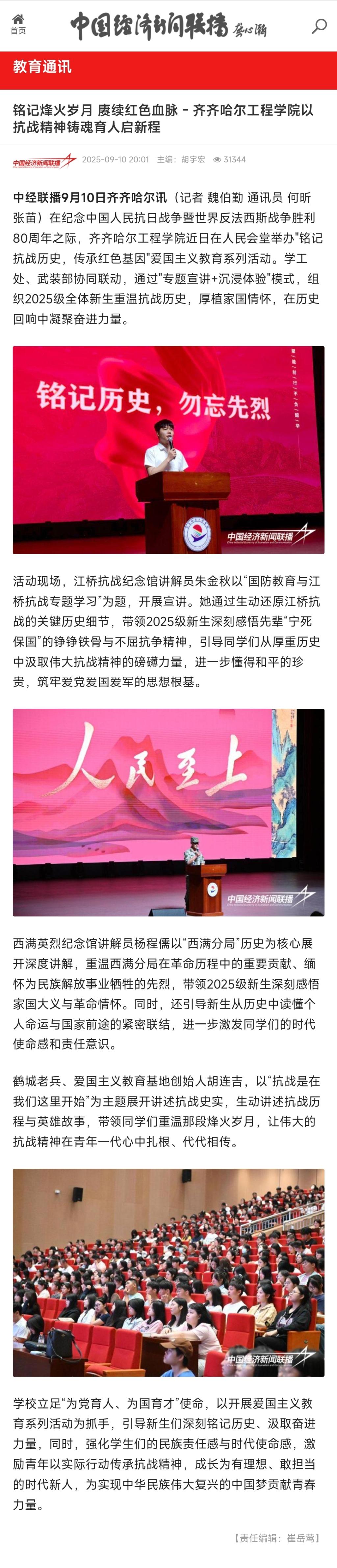 《中国经济新闻联播》铭记烽火岁月 赓续红色血脉-伟德bv1946官网以抗战精神铸魂育人启新程