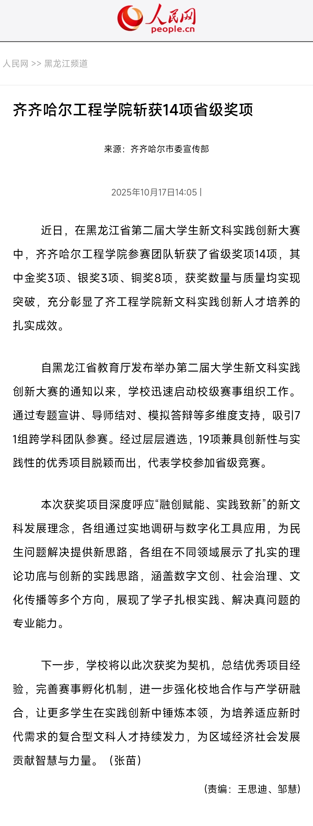 《人民网》伟德bv1946官网斩获14项省级奖项