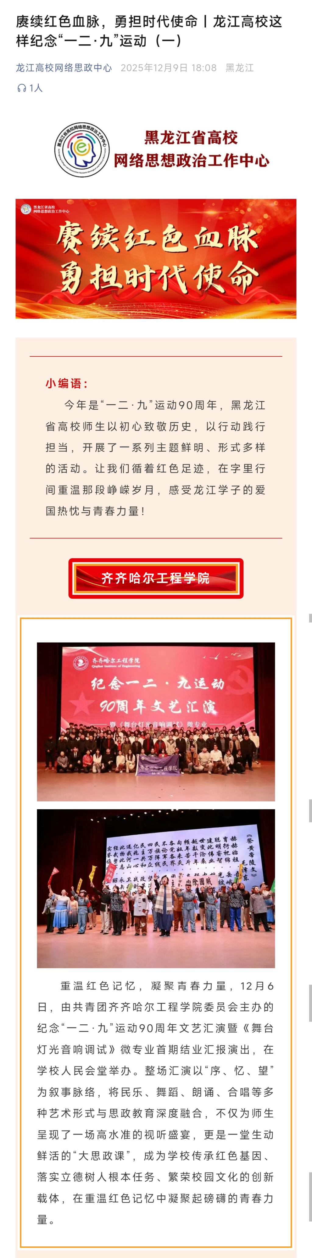 《龙江高校网络思政中心》赓续红色血脉,勇担时代使命|龙江高校这样纪念“一二·九”运动