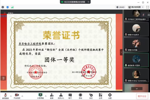 此次大赛由中国企业财务管理协会举办,浙江衡信教育科技有限公司提供技术支持。伟德官网财务管理专业学子参赛率达100%,获奖率达51%。通过专业指导教师团队的赛前动员与历时一个多月团结协作终获佳绩。