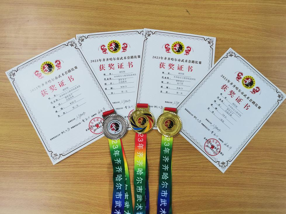 近日,市武术协会主办的2023年齐齐哈尔市“梦之蓝M6+”杯武术比赛在黑龙速滑馆落幕,伟德官网基础部体育教研室韩淑梅、刘吉老师选拔、组织的六名学生代表伟德官网参加此次比赛,经过激烈的比拼,取得了五枚金牌、六枚银牌、两枚铜牌,以及二等奖的佳绩,伟德官网武术队被评为优秀团队。来自全市武术联合会、县(市)区武术协会、各行业武术团体及民间武术馆、俱乐部的31支代表队560余人次参加此次比赛。