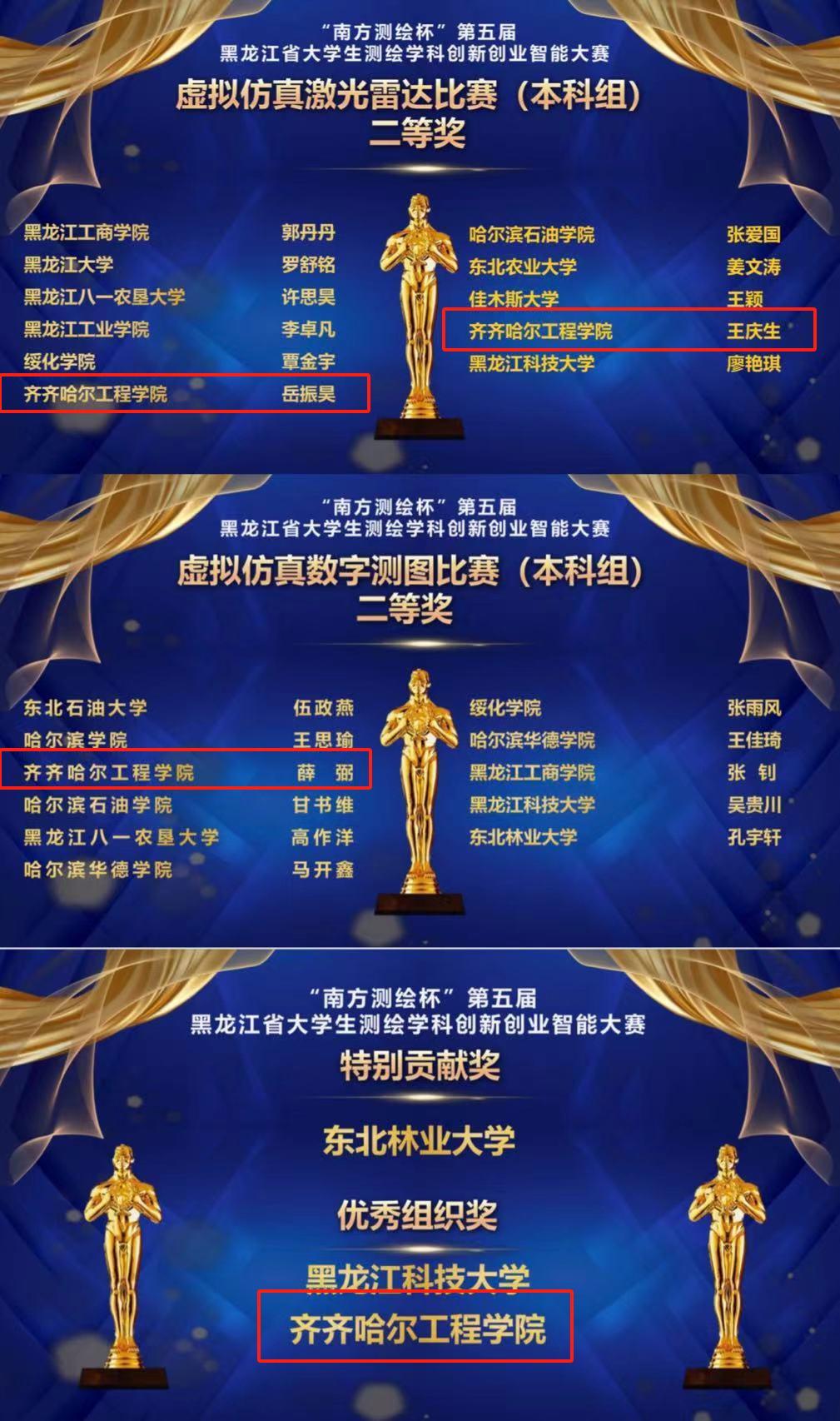 5月17至18日,由黑龙江省教育厅与黑龙江省测绘地理信息局举办的“南方测绘杯”第五届黑龙江省大学生测绘学科创新创业智能大赛在东北林业大学举行。经过5个小时的激烈角逐,在“激光雷达”赛项上,学校建筑工程系土木工程专业学生王庆生、工程管理专业学生岳振昊,斩获了本科组第二名的好成绩。在“数字测图”赛项上,建筑工程系土木工程专业学生薛弼在两百多选手中脱颖而出,斩获了本科组第二名的优异成绩。同时,学校荣获“优秀组织奖”的荣誉称号。