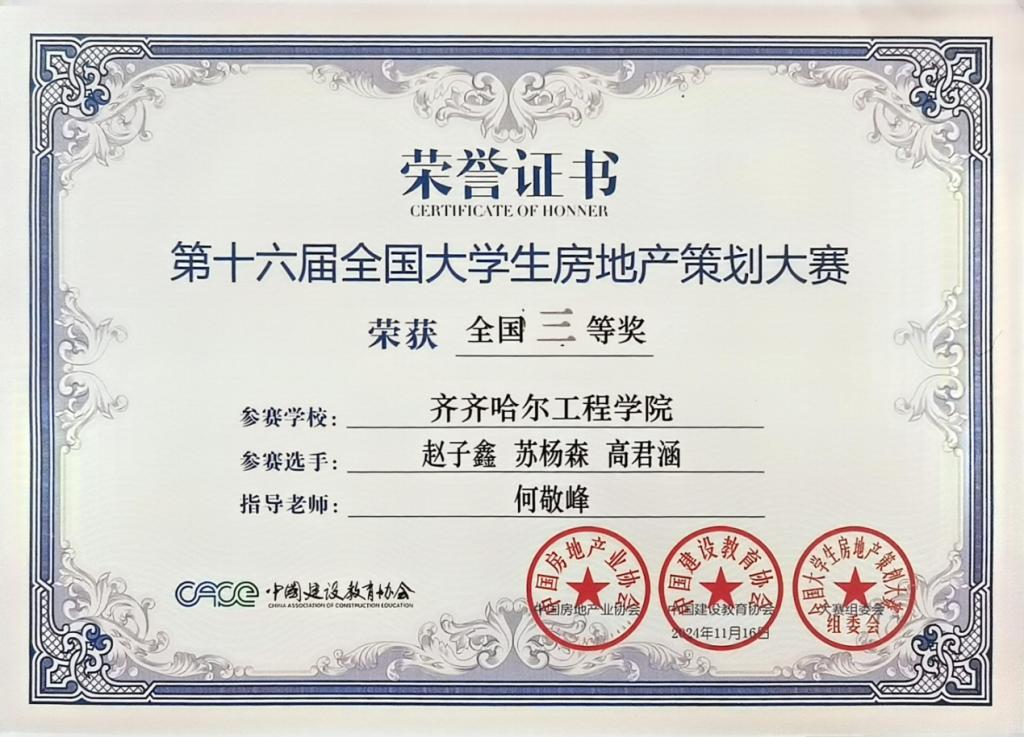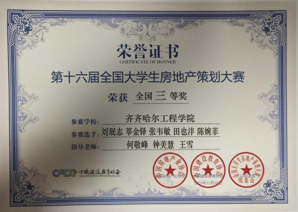 近日,第十六届全国大学生房地产策划大赛传来喜讯,在总决赛中,伟德官网建筑管理工程系土木工程专业“欢乐斗地主队”“希望小队”团队荣获房地产开发项目策划赛道三等奖;工程管理专业“芝士派队”团队荣获城市更新项目策划赛道三等奖。