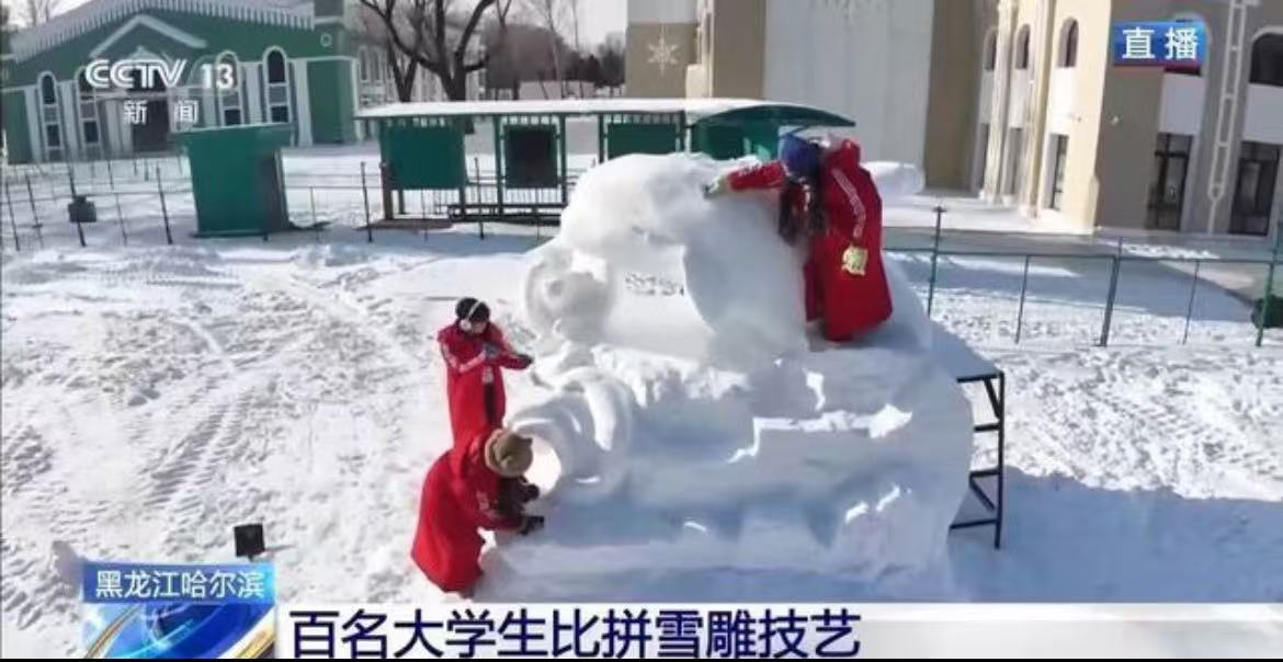 12月13日至16日,哈尔滨太阳岛上迎来了一场冰雪艺术的盛宴——第十届黑龙江省大学生雪雕比赛。来自全省各高校的大学生团队纷纷亮出绝活,伟德官网视觉传达设计专业教师辛明明带领视觉232班张涵涵、李春燕、戎子杉三名学生也在这场比赛中一展身手,并取得了优秀奖的好成绩。这场精彩纷呈的活动不仅吸引了众多现场观众,还引起了央视新闻的关注并进行了报道。