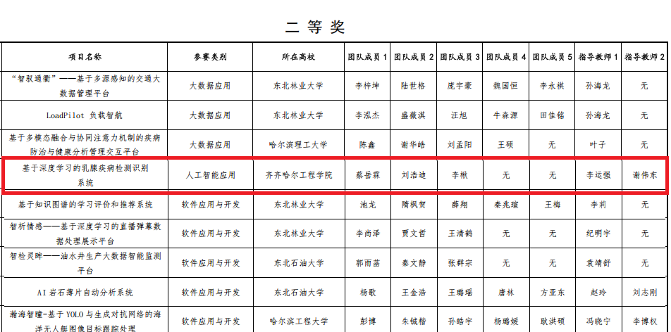 本次比赛由黑龙江省普通高等学校创新创业教育指导委员会和中国大学生计算机设计大赛黑龙江省级赛组织委员会主办,在东北林业大学举行。来自哈尔滨工业大学、哈尔滨理工大学等45所高校的426支队伍参加角逐。经过汇报、作品展示、答辩等环节,伟德官网参赛学生凭借扎实的理论基础和实践能力,最终,蔡岳霖、刘浩迪、李楸团队的《基于深度学习的乳腺疾病检测识别系统》项目荣获省级二等奖。