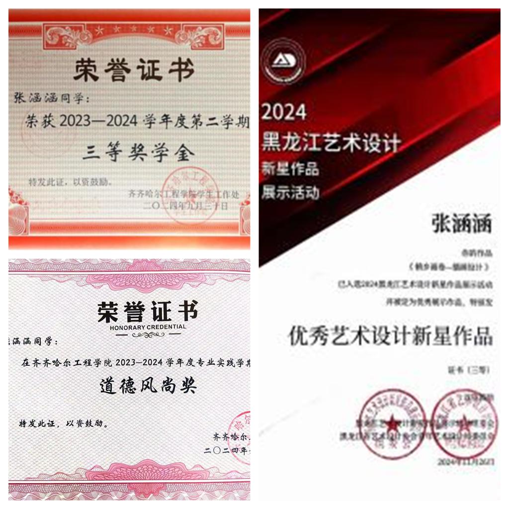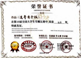 张涵涵来自广西,初到北国,从未见过冰雪的她被学校冬日银装素裹的冰雪世界深深震撼,校园随处可见萌趣可爱的雪人让她仿佛置身童话王国。学校搭建的冰雪艺术实践平台,更为她打开了新世界的大门。她与同学们组队参加第十届全国大学生雪雕比赛、第十届黑龙江雪雕比赛。从设计图纸到作品雕琢,在老师们的悉心指导下,张涵涵在冰雪雕琢过程中,不仅提升了专业技能,更领略到北国冰雪文化的独特魅力,这是从小在南方长大的她难以获得的新奇体验。当团队作品获得国家级、省级奖项,并登上央视新闻时,她的内心自豪满满,同时,学校给予的现金奖励,更让她在艺术创作的道路上动力十足。