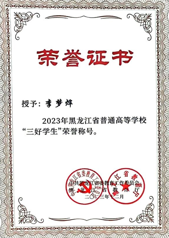 作为一名中共预备党员,李梦烨始终保持着高度的思想政治觉悟。她积极发挥模范带头作用,带领班级同学参与各项活动。在校期间,她先后获得“2022年伟德bv1946官网丁香学子”“2022年度班级十佳大学生”等荣誉称号。