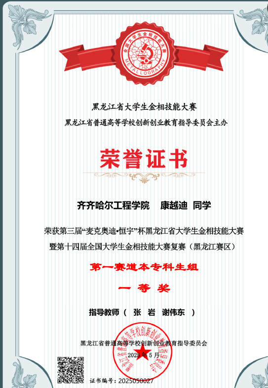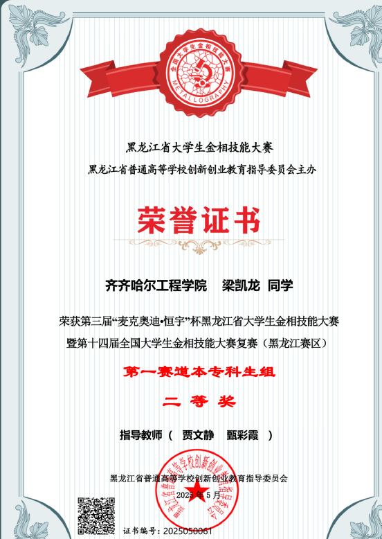 近日,在哈尔滨理工大学举行的第三届“麦克奥迪·恒宇”杯黑龙江省大学生金相技能大赛暨“徕卡”杯第十四届全国大学生金相技能大赛复赛(黑龙江赛区)传来喜讯,伟德官网机电学院6名参赛学生均获奖项,其中:获一等奖1人、二等奖1人、三等奖4人,3人晋级国赛。机电学院张岩老师获得优秀指导教师称号。伟德官网是第一次参加此项赛事,此次获奖充分展示了机电学院在人才培养方面的显著成效。