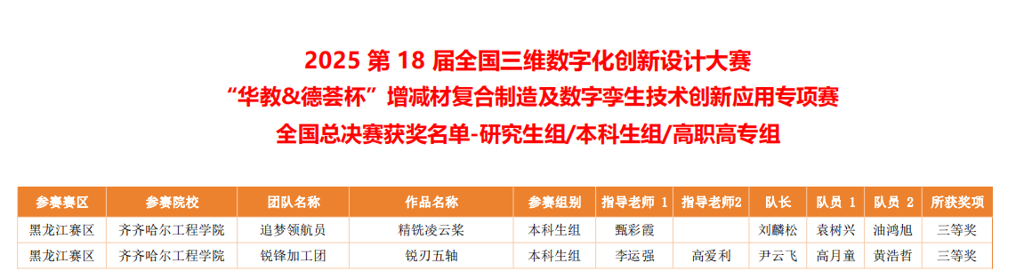 【喜报】伟德官网在2025年第18届全国三维数字化创新设计大赛“华教&德荟杯”增减材复合制造及数字孪生技术创新应用专项赛全国总决赛中斩获佳绩