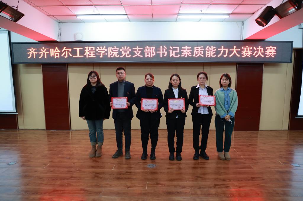 最终,教师党支部书记组的信息工程系郭伟伟获得一等奖、机电工程系宋华、管理工程系于红岩获得二等奖、建筑工程系袁继杰、机电工程系刘智获得三等奖,学生党支部书记组的建筑工程系蔡爽获得一等奖、机电工程系潘帝池、信息工程系兰天月获得二等奖、建筑工程系王雪、管理工程系刘娜获得三等奖。五位评委分别为获奖选手颁奖。