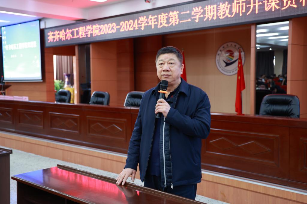224日上午,学校在图书馆601报告厅开展2023-2024学年度第学期教师开课资格考核活动。理事长曹勇安教授出席并担任特约评委,副院长张静及各教学单位副主任担任评委。各教学单位领导及全体专业负责人、任课教师线下参会,其他教学相关人员线上参会,教务处副处长郝丽娜主持此次活动。