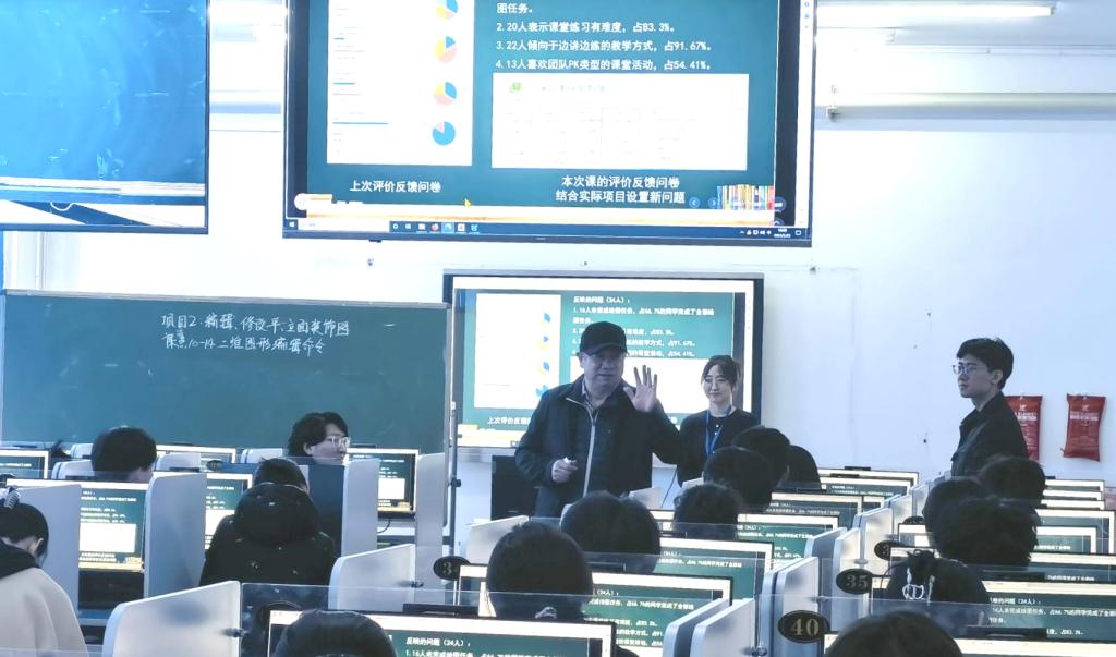 课前,曹勇安与学生亲切交流,耐心讲解团队合作的重要性,希望同学们要增强团队精神、提高应用技能、做好分工合作,鼓励学生积极参与到教学全过程中。