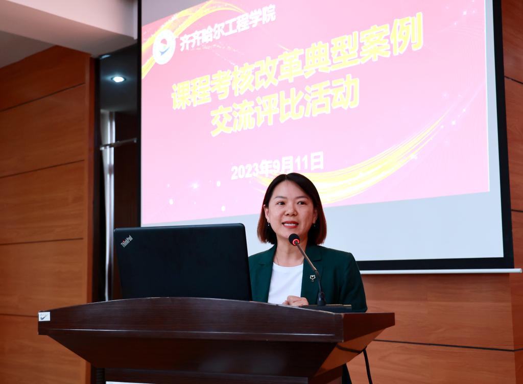 为总结经验,选树典型,9月11日,学校在图书馆601报告厅组织开展了课程考核改革典型案例交流评比活动。副院长张静、教务处副处长冯洁和各教学单位教师代表参会,各教学单位副主任担任评委,教务处考务科科长张莹主持。