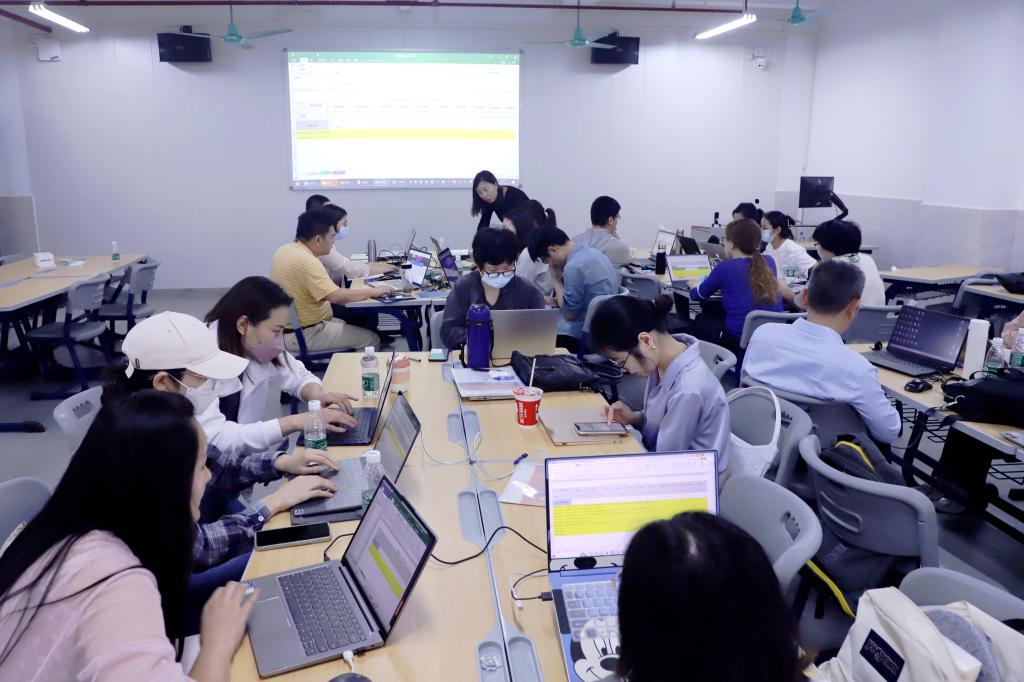 集中精讲结束后,以团队形式开展分班研修。期间,坚持“小步伐、高频率、快反馈”的教学方法,体现“讲练结合、精讲多练、突出精讲、贵在多练”的教学特点,“手把手”指导学员课程开发与实践,让学员们在“做中学、学中做、学会做、学做合一”。