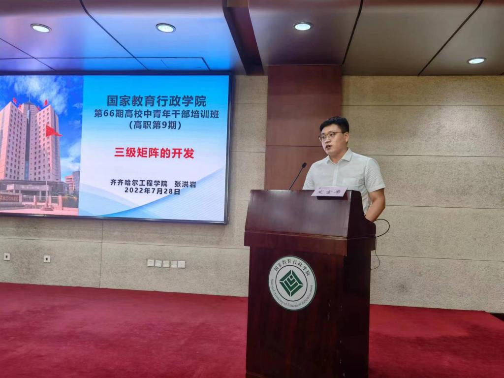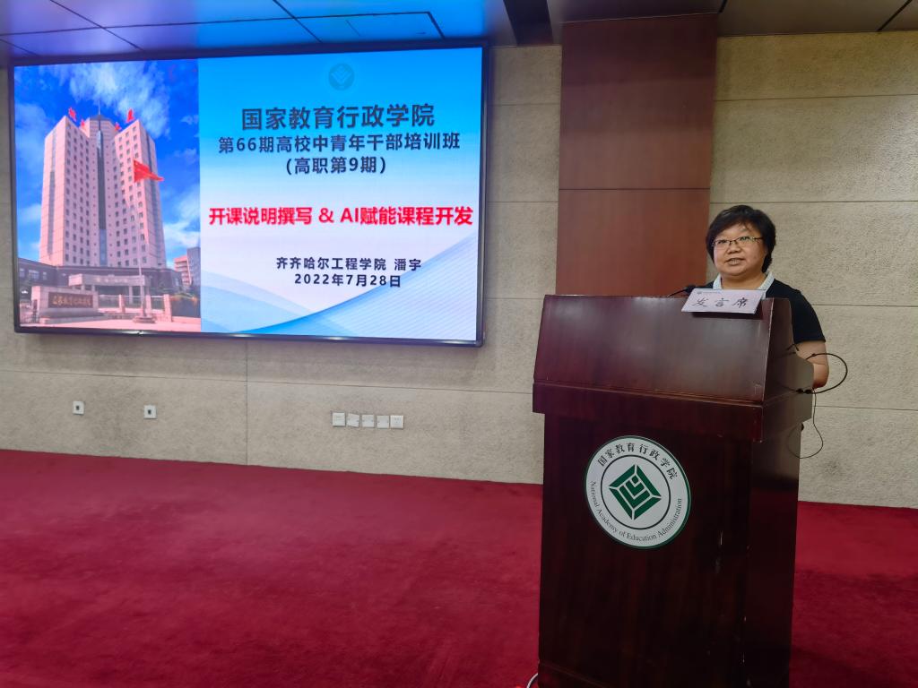 7月28日,受国家教育行政学院邀请,由理事长曹勇安、副院长张振笋、教务处副处长潘宇、信息工程系主任刘春媛、护理系负责人郭玲玲、管理工程系副主任张洪岩组成的FT课程研发团队一行赴北京,为国家教育行政学院第六十六期全国高校中青年干部培训班(高职第九期)学员开展“四真三化(FT)课程开发工作坊”,这是国家教育行政学院第一次以工作坊形式开展课程开发研修活动。