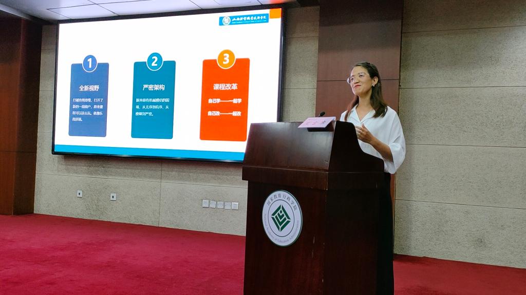 山西财贸职业技术学院文化旅游系主任王雪娟以“基于FT课程建设模式的《模拟导游》课程开发”为题分享了学习收获,她在分析原有课程建设情况后,指出课程改革的关键在于解构、重构、课点及矩阵图法,并从专业培养目标确定的思维导图、一级矩阵、二级矩阵和三级矩阵阐述了课程建设思路。最后,她表示,此次培训带给自己的是全新的视野,使自己“打破传统思维,做课程打开了一扇窗,原来做课程可以这么玩儿,就像乐高拼接”;习得了课程开发的一种严密架构,摒弃原有机械的模仿,从无序变为有序,从模糊变得清楚,从松散变得严密。关于课程改革,她表示,将此次学习培训为契机,加强自我学习,同时也要带领其他教师一起学习,课程改革不仅要自己改,还要大家一起改。