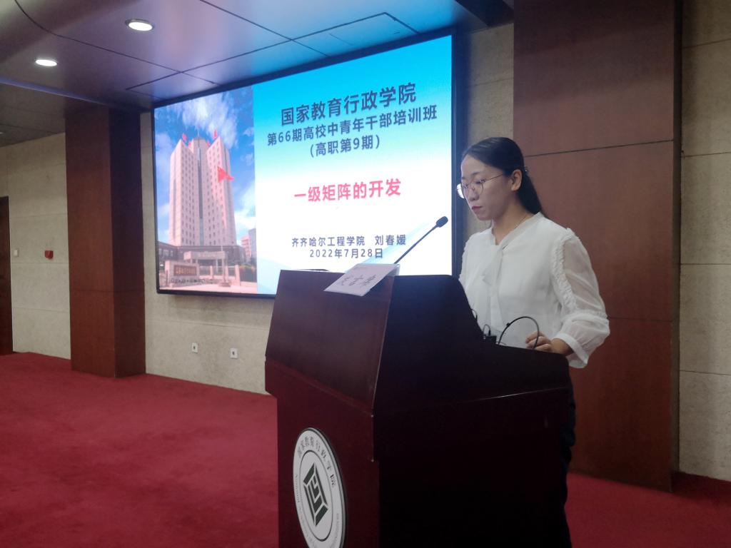 郭玲玲集中精讲二级矩阵的开发,阐明了二级矩阵的开发逻辑,从课点三量、解构与重构、门课教学目标的确定等方面强调了开发要点,使参训干部了解一级矩阵和二级矩阵之间的联系,明确了二级矩阵的编制方法。郭老师指出:课程“三元素”(课程中的态度点、知识点、技能点)的普遍性与“三量”(课程的数量、质量与序量)的特殊性的统一,贯穿于课程开发的始终。“三量”的特殊性揭示了课程开发的普遍性;彰显出课程开发中创造精神的普遍性。