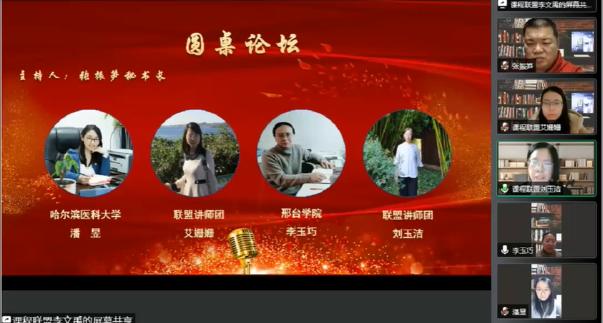 “圆桌论坛”环节由张振笋秘书长主持,哈尔滨医科大学大庆校区潘昱老师(学员)、邢台学院李玉巧老师(学员)、河北民族师范学院艾姗姗老师(讲师团成员)、伟德bv1946官网刘玉洁老师(讲师团成员)分享体会。