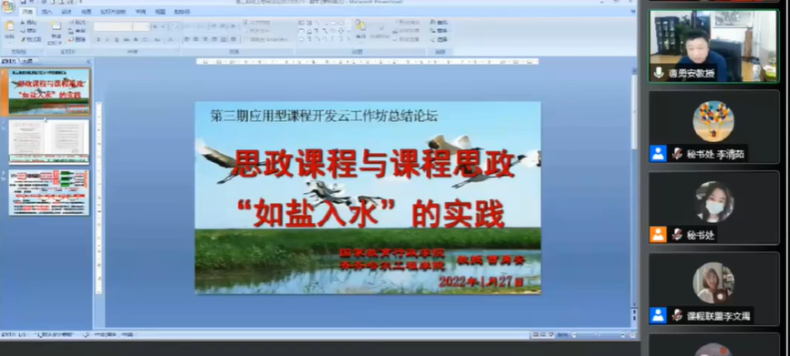 艾姗姗老师从自身经历出发,从第二期云工作坊的学员转变为第三期云工作坊的讲师团成员,表示本次工作坊从知识和能力方面,对应用型课程开发的四要素、课程思政、以学生中心、四真三化有了更深入的理解。例如课程思政如何融入,课程思政如何真正的落地和实施,如何使门课与课点的特点结合在一起来实现整门课的价值引领的目标。通过组内教师学习态度的影响更加深刻的体会到价值引领的重要性,教师持续学习,始终保持对知识的渴望,实际也是对学生学习态度的一种培养。