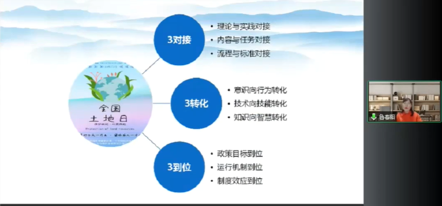 学员鲁春阳教授分享《土地利用规划学》课程开发,鲁教授从课程定位、课程设计、课程实施和课程评价四个部分进行了说课展示。鲁教授表示通过学习首先了解了应用型课程建设的基本流程,确定专业培养目标,提出毕业要求。进而设计一级矩阵、二级矩阵和三级矩阵。同时通过学习也认识到课程建设与管理是推动课堂革命的关键抓手,课点设计与重构是优化课程内容的前提条件,课程实施与评价是提升课程质量的有效保证。
