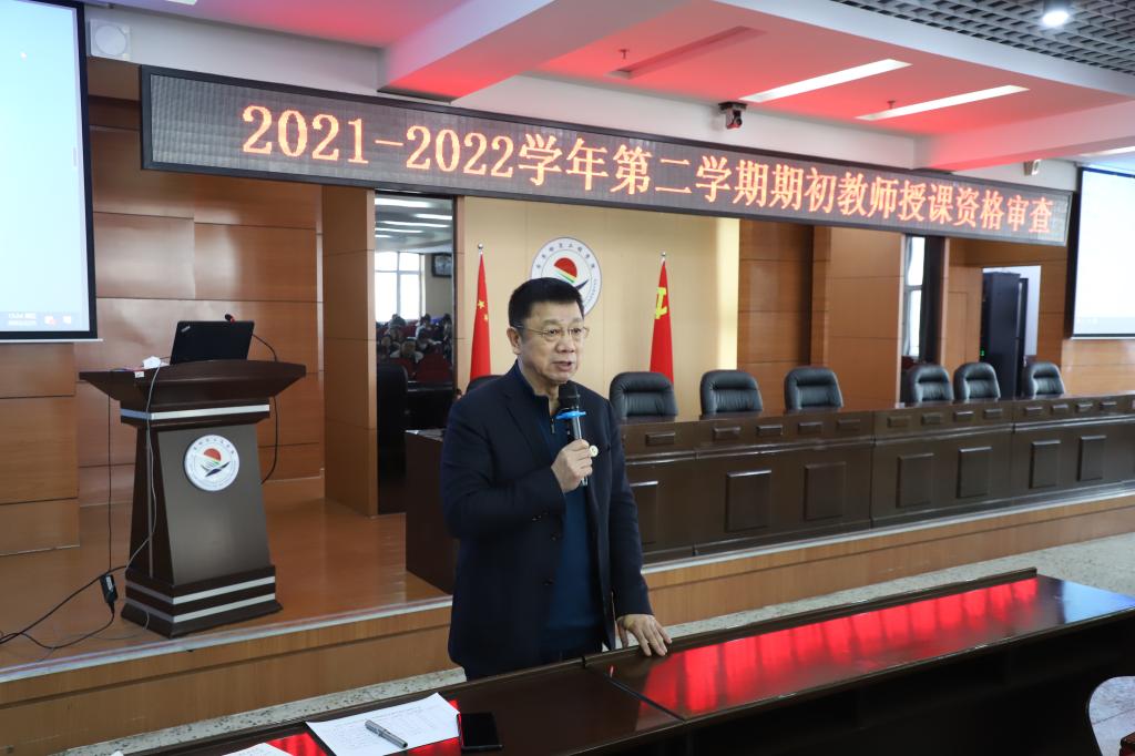 2月25日,学校在图书馆601报告厅开展了2021-2022学年第二学期期初教师授课资格审查活动。活动邀请理事长曹勇安、各系部教学工作副主任担任评委,全体教师参会,由教务处副处长潘宇主持。