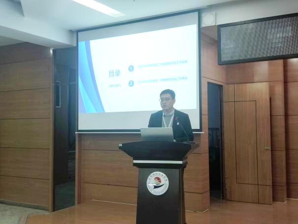 首先,全质办副主任张洪岩反馈了2023-2024学年第二学期课程评估工作整体情况,重点对评估中存在的问题进行了分析,对评估相关指标进行了解读。对2024-2025学年第一学期课程评估工作培训过程中的常见问题、各评估指标内涵以及指标点变化情况进行了说明,并指导各开课单位、各课程做好自评自建工作。