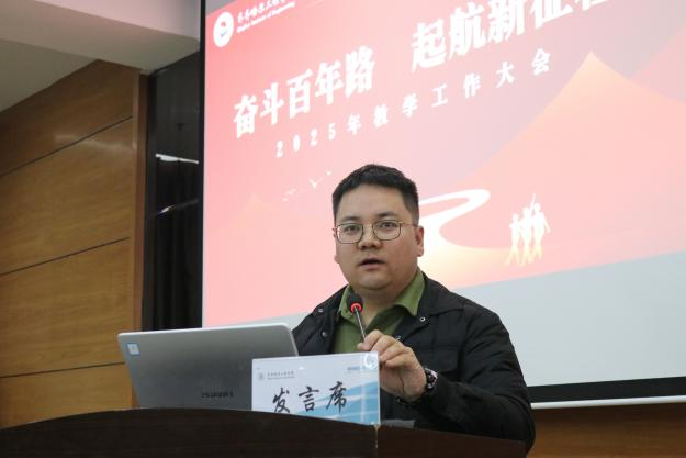 在“十四五”规划收官之年以及硕士学位授予单位攻坚的关键时期,为全面梳理2024年教学工作成果,科学部署2025年教学重点任务,3月31日下午,学校在图书馆601报告厅召开2025年度教学工作会。副院长张静出席会议。教务处、全面质量管理办公室、教师发展中心等相关职能部门干部,各教学单位干部及全体任课教师参会。会议由教务处处长李文禹主持。