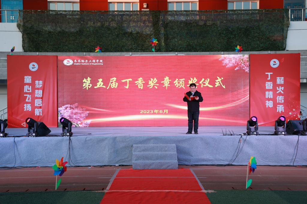会上,张振笋副院长代表丁香奖评选委员会宣读《关于表彰2023“丁香奖章”获得者的决定》,授予机电工程系机器人工程专业222班肖淞元等50人“丁香学子奖章”,财管193李彤彤家长李凯峰等5人获“丁香家长奖章”、公寓辅导员程丽华老师等7人获“丁香教师奖章”,授予贾希蓓等10名小朋友“丁香少年奖章”。