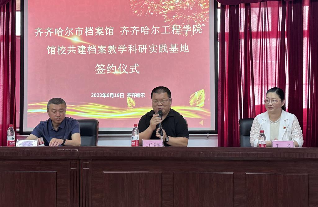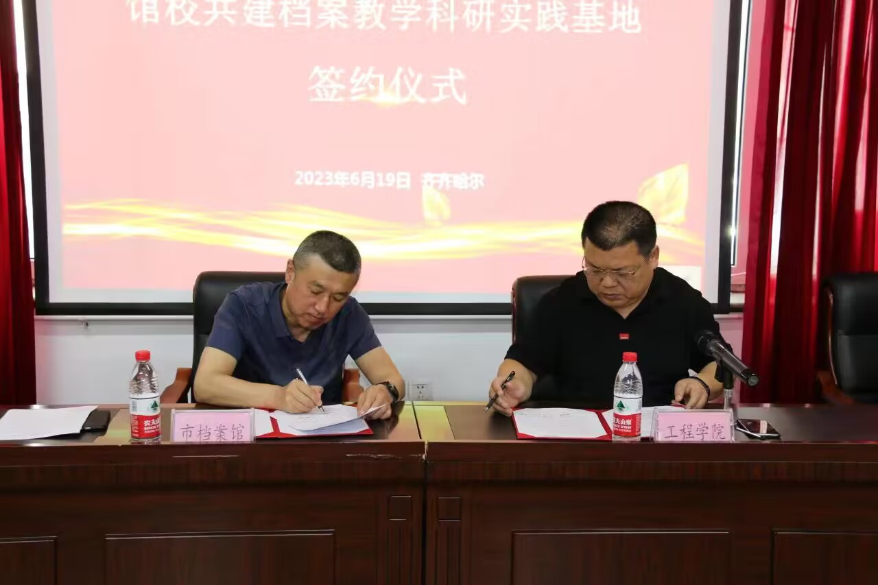 6月19日,学校与齐齐哈尔市档案馆共建档案教学科研实践基地签约暨揭牌仪式在市档案馆会议室举行。