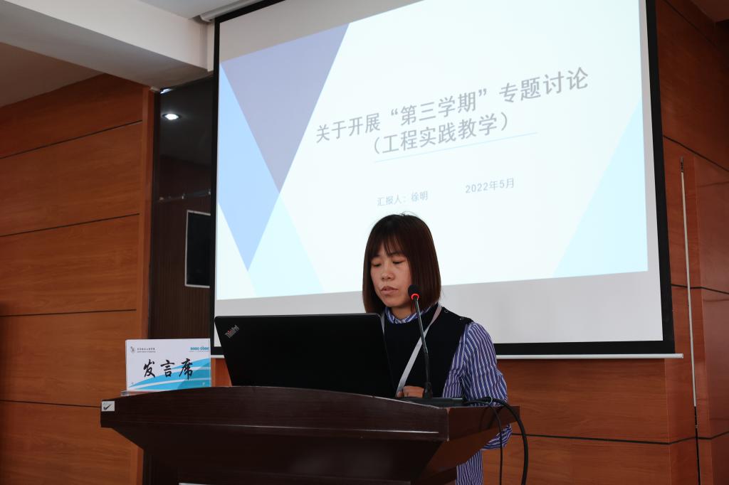 5月14日,在图书馆601报告厅,教务处组织开展了第三学期工程实践专题讨论。本次讨论由教务处处长张静主持,各系教学副主任围绕第三学期工程实践的教学设计展开汇报,骨干学习班全体成员线下参会。