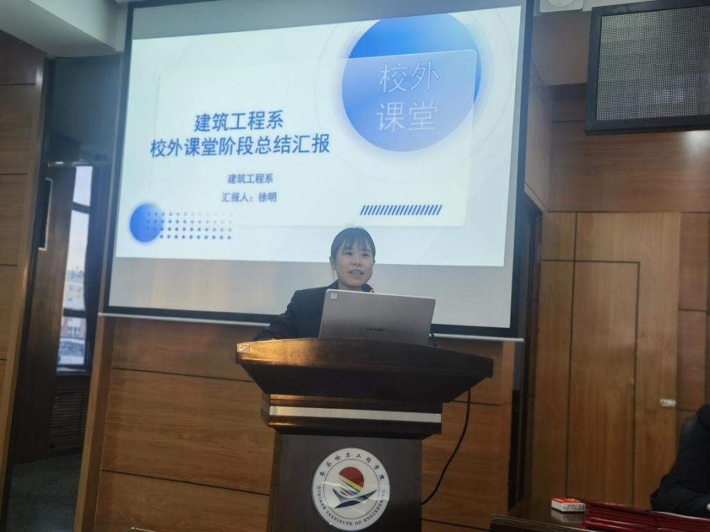 徐明介绍了建筑工程系校外课堂建设的总体情况,对校外课堂的特色活动和教学成果进行了总结。为激发师生在校外课堂中的热情,提升专业素养,建筑工程系组织了校外课堂实践成果评比、微视频竞赛等活动。通过校外课堂,教师总结实践经验,整理申报应用型教材3项、省级课程思政案例2项。学生们能够更加深入地了解建筑工程的实际操作和行业发展趋势,提高自己的实践能力和综合素质,获得多项省级以上荣誉。同时,校外课堂还为学生提供了与行业专家面对面交流的机会,有助于学生拓宽视野、增长见识。