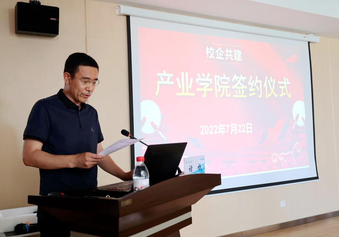 院长曹然彬代表学校全体师生向出席今天仪式的领导和企业界朋友表示热烈的欢迎,并向长期以来对伟德官网的建设和发展予以关心和支持的政府、企业致以衷心的感谢。他指出,产业学院的建立,既是贯彻落实国家和我省“加快发展现代产业体系”的战略部署,更是推动学校高质量发展和企业人才培养的重要举措,助力打造集产、学、研、转、创、用于一体,互补、互利、多赢的实体性人才培养创新平台。希望校企双方以签署战略合作协议为新的开端,依托各自资源优势,扩展空间领域,完善产学研融合机制,推动共同建设、共同管理、共享资源,实现现代产业学院可持续、内涵式创新发展。