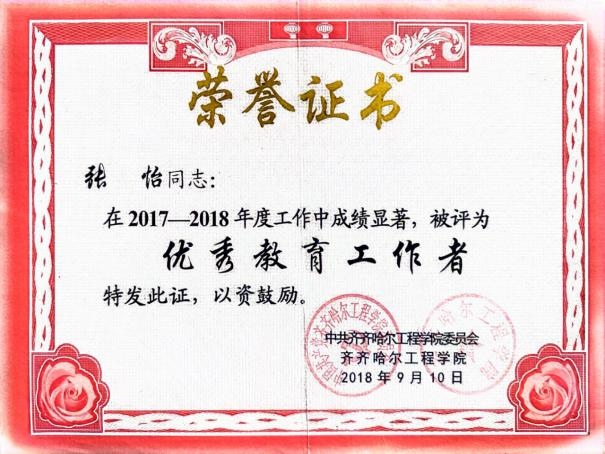 张怡始终秉持着“以学生为本”的教育理念,致力于帮助学生规划好自己的人生道路,实现自我价值。她根据学生自身的具体情况有针对性地进行关注与指导。所带的学生曾先后荣获国家奖学金、国家励志奖学金及黑龙江省三好学生等荣誉。与此同时,她还积极参与学生的学科竞赛备赛指导,多次获得优秀指导教师称号。