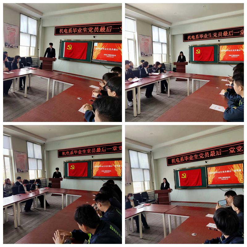 为毕业生党员上最后一次党课,是机电工程系党总支工作的重要内容。毕业生党员再一次接受党性教育,是一次锤炼党性、凝心铸魂的思想政治洗礼,进一步坚定了毕业生党员的理想信念和宗旨意识。希望2024届毕业生党员牢记母校嘱托,担当青年使命,以昂扬姿态踏上人生的新征程,以奋进青春建功新时代,以实际行动为母校增光、为党旗添彩,让青春在全面建设社会主义现代化国家的火热实践中绽放绚丽之花。