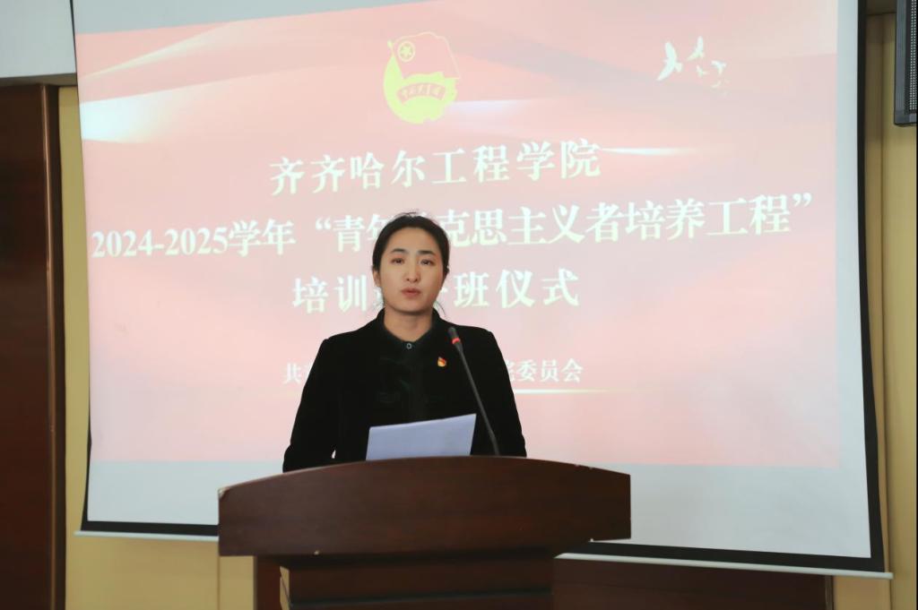 高士涵宣读《伟德bv1946官网2024-2025学年“青马工程”培训方案》,从培训目标、培养要求,培训内容、考核方式等方面介绍了本期培训班的基本情况。