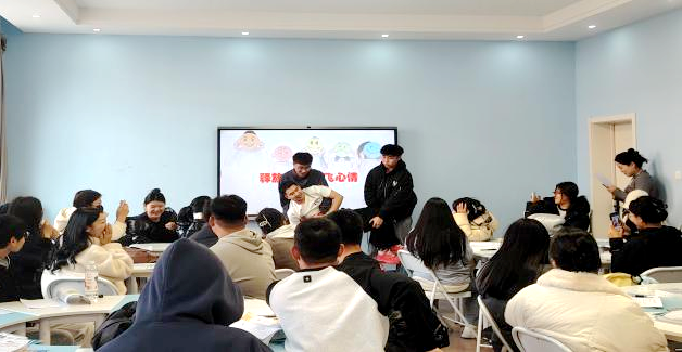 最后,艾涵塽带领学生进行了一系列实用的压力应对技巧和放松训练,学生在实践中找到适应压力的方法和技巧,学会缓解学习和生活中的压力。