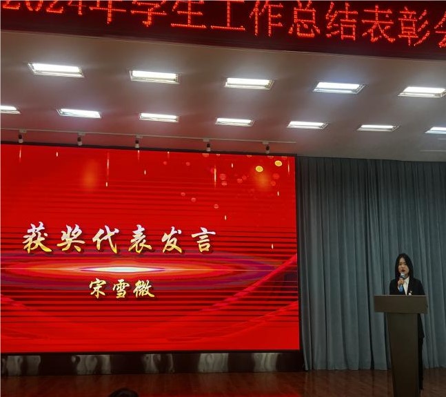 建筑管理工程系辅导员宋雪微作为优秀辅导员代表发言,她表示,2025年,将大力弘扬教育家精神,坚定“心中大我、至诚报国”的理想信念,积极响应“亮剑”精神,为推进学校迎接审核评估工作贡献力量。